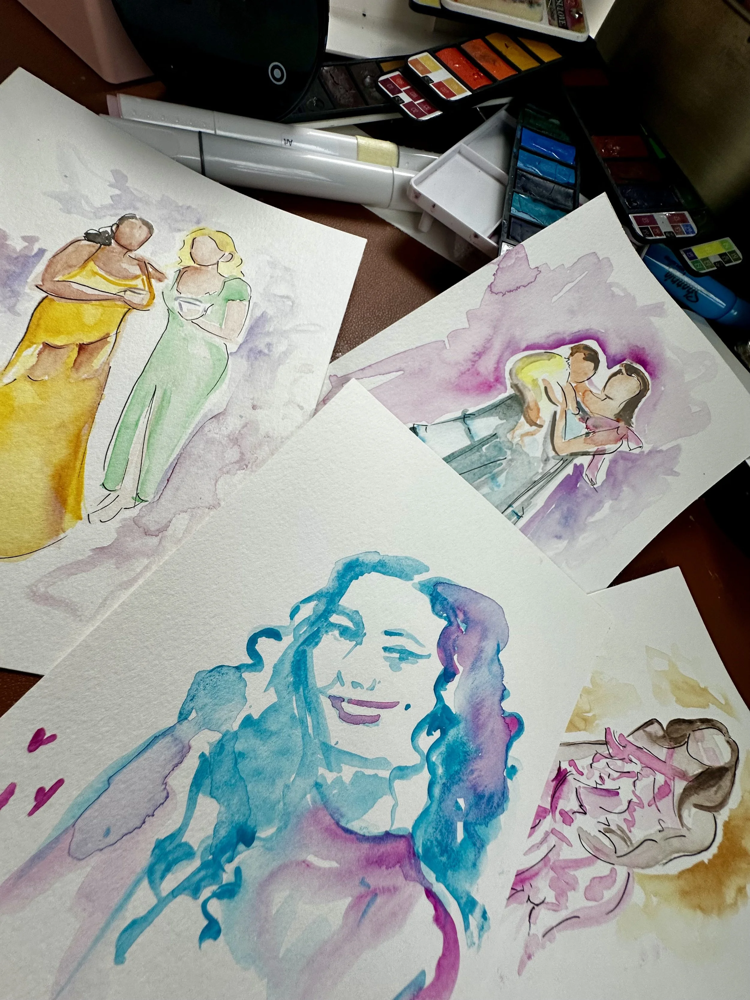 “I had the most amazing artist paint live for my wedding and blew me away with her immense talent. Live means she painted during my wedding ceremony! Today she delivered our wedding painting to our home and I boohoo cried! [Jess] is the most kind hearted person and would highly recommend working with her if you have been thinking about something like this. I met her by chance and believe it was meant to be!! Totally worth it and she effortlessly captured each of my children’s unique personalities. I cannot say enough! Wow!! ”