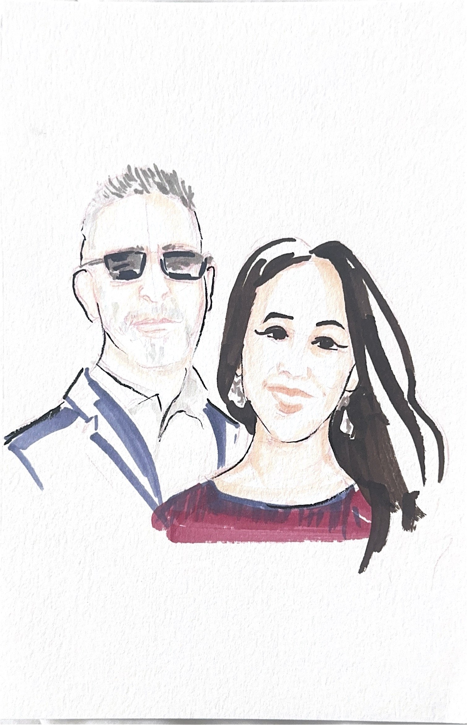 Focus: Shoulder-length illustrations highlighting your guests’ expressions and personality.